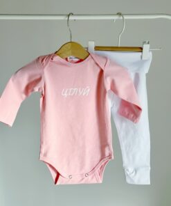 Комплект 2в1 “Цілуй” 62р полуничний мус/білий