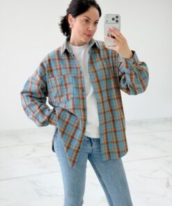 Сорочка блакитна в бежеву клітинку