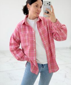 Сорочка рожева в білу клітинку
